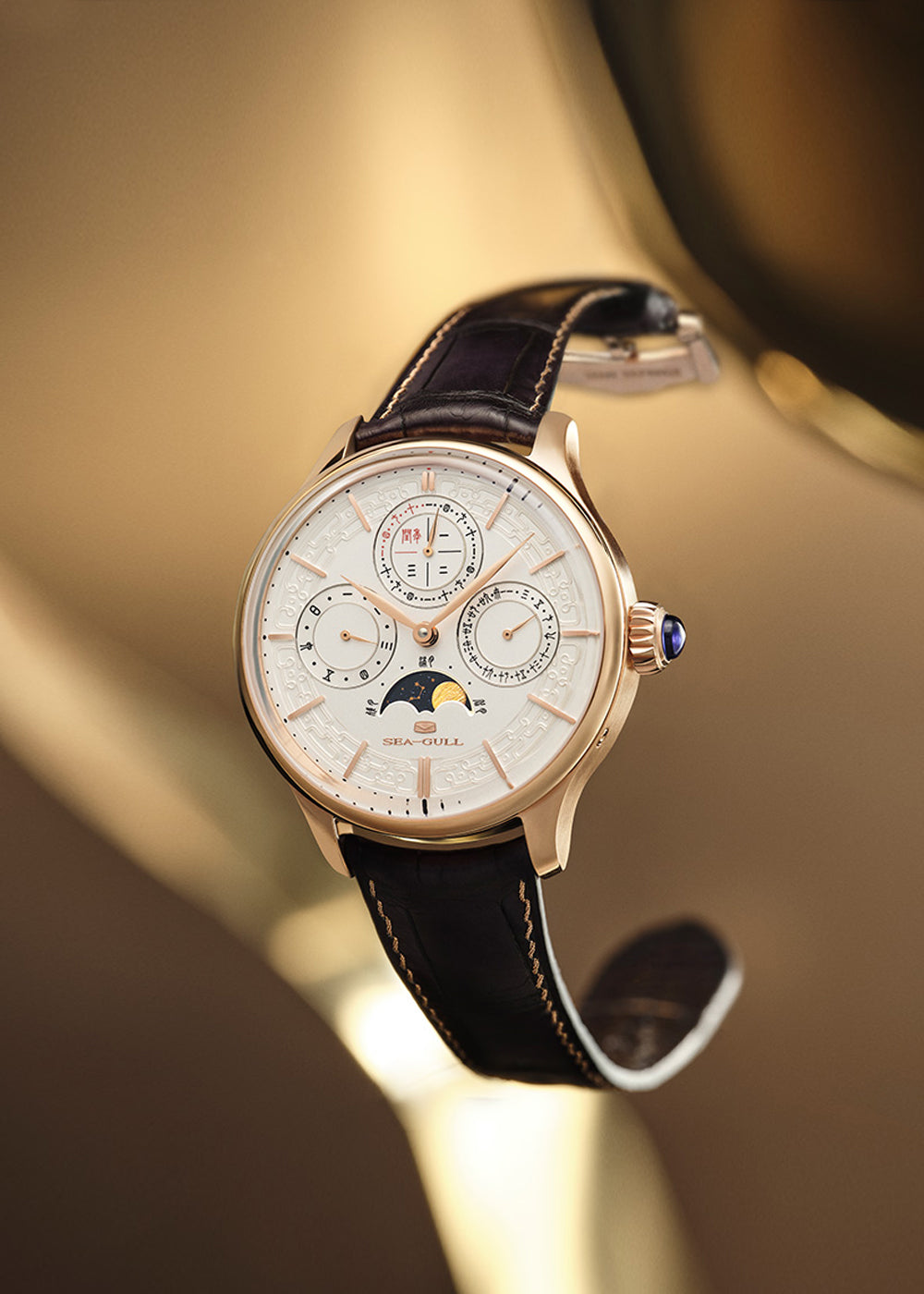 Inspired by the ancient Chinese armillary sphere, Sea-Gull masterfully blends celestial wisdom with modern horology. The dial features a refined grained finish, while the dual tourbillon movement showcases the pinnacle of craftsmanship — a true tribute to mechanical artistry.